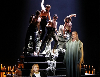 Teddy Tahu Rhodes as Méphistophélès and actors in Opera Australia’s production of Faust at the Sydney Opera House. Photo credit: Prudence Upton
