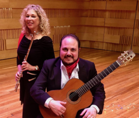 Live at Lunch artistic director and flutist Jane Rutter and guitarist Giuseppe Zangari release a special online concert of Hispanic & Italian Music featuring passionate and haunting music by de Falla, Nelegatti, Ibert, Von Paradis, Piazzolla and more, including the theme from the movie The Deer Hunter by Stanley Myers. Filmed for Live at Lunch at the Concert Hall of The Concourse, the concert is set as a YouTube premiere.