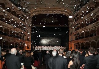 Ross also makes reference to the unprecedented action by Riccardo Muti, conducting Nabucco halted the performance and spoke to the audience about the situation. The response from both the chorus and the audience was unprecedented. The entire auditorium joined in for a reprise of Va’ pensiero, Gerard Depardieu was amongst the first to stand and applaud; flyers rained down from the Loggione as a customarily conservative and reserved section of society defied the unwritten rules of the opera theatre to express their sentiments.(2)