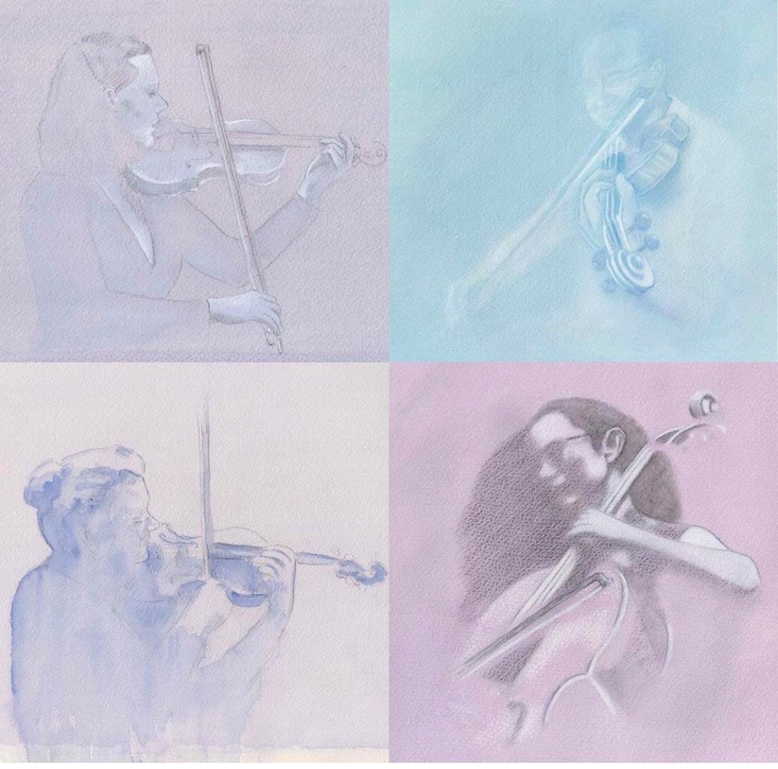 Lisa’s balance between music and drawing fluctuates according to her concert and recording schedules. The weekend’s recording was of a collection of works by Moya Henderson with Roland Peelman at the piano. Along with the ensemble items, Lisa recorded the three Wilderness Pieces for violin and piano, inspired by the photographs of the great Tasmanian photographer Peter Dombrovskis. After that. she has to prepare for the Orange Chamber Music Festival and the Bowral Autumn Music Festival. “But I do enjoy the teaching,” she adds. Lisa has students of all ages “I love the younger ones, but I also have students who are in their 70s and we have started an adult string group. For me, it’s a really nice mix of performing and recording with Acacia, teaching and art.”